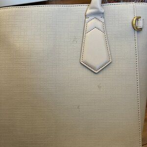 NOTE: There are marks on side of bag and the leather on the handles is peeling on the sides. Please see photos included for reference. Neoprene cupholder not included.