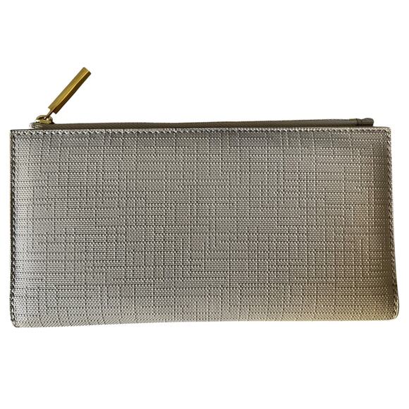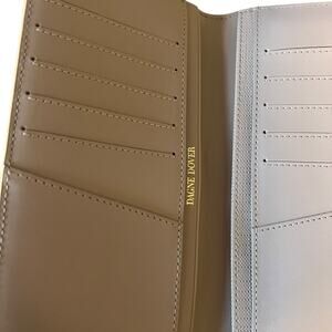 Timeless Dagne Dover Full Size Slim Wallet in Beige. It features a zipper closure, multiple card slots, and many compartments for receipts, photos, and other important accessories.