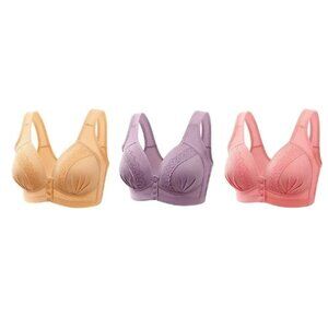 Daguandan Womens Front-Snap Closure Bra Sz 48/16 XXXXL x 3pc Beige/Gray/Rose NWT