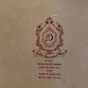 This is a large vintage tin bowl or tray made by Daher, England in 1971 in a gorgeous floral design.