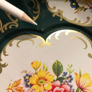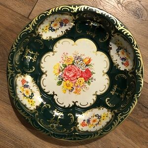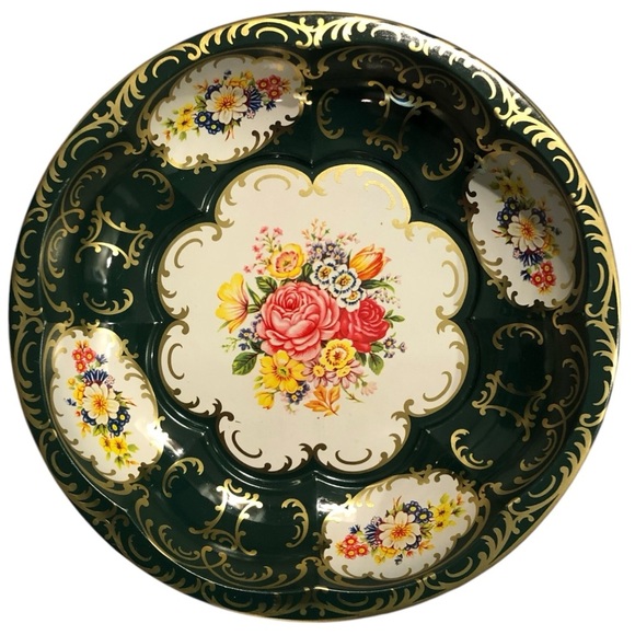 Daher Decorated Ware Metal Bowl - Green with Florals & Gold Accents