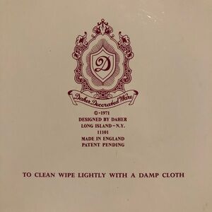 A charming vintage metal bowl from 1971, adorned with a floral design that has a classic appeal. Despite some chips and scrapes on the surface, the bowl retains its nostalgic beauty, capturing the elegance and character of mid-century decor. Perfect as a decorative piece for vintage collections or as a unique accent in any room.