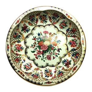 Daher England Decorated Ware Tin Serving Fruit Bowl Floral Gold Vintage 1971