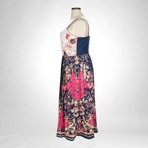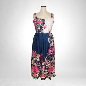 Dahlia MacPhee XL Women's Cocktail Dress Sleeveless Midi Pleated Pink Blue