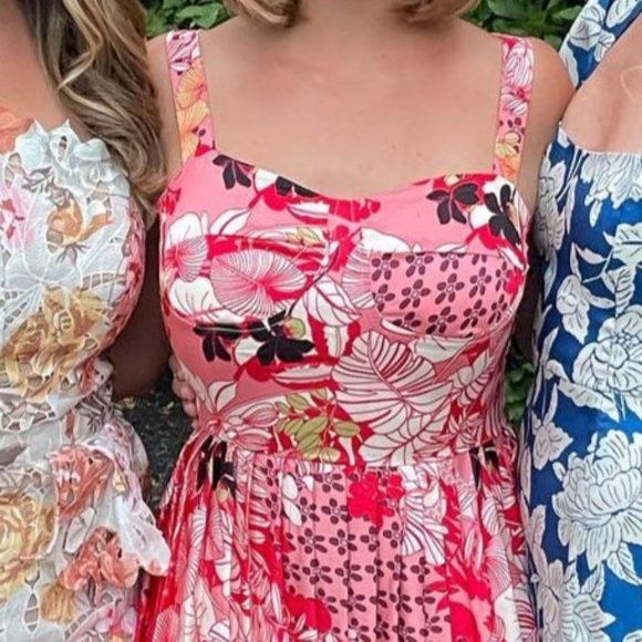 Beautiful and unique silk floral Dahlia Macphee dress size medium. Worn once to a wedding and immediately dry cleaned after. For reference I am 5'4" 135lbs and 34C. Please let me know if you have any additional questions!