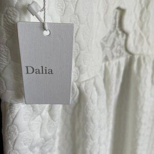 ITEM: NWT Dahlia scalloped off-white sleeveless dress with lace insert at back.