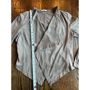 Daila Taupe Faux Suede Open Front Waterfall Stretch Cropped Jacket Size Med