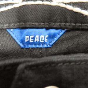 Daily Blue Black Infinity Peace Bellbottom Jeans 30 Bellbottom style jeans. Relaxed Bell Stay Black Stretch Baxerite Content: 70% Cotton 17% Polyester 7% Viscose Measurements Waist: 16.5" Inseam: 34" Rise: 10.5"
