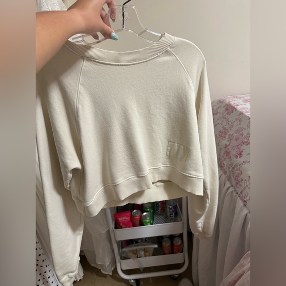 Stylish cream cropped sweatshirt with ribbed cuffs and hem. Size XS/s