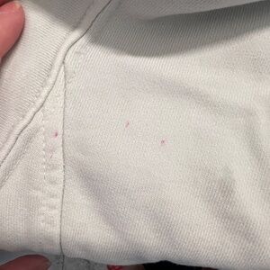 One on the hem, the other light pink spots are right on the back near the armpit. Not noticeable when wearing!!