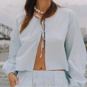 Daily Drills Poplin Tie Top in Light Blue Size XS/S