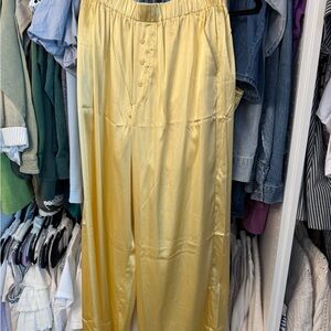 Shiny golden satin pants with a smooth finish. Includes extra button. NWT - size M/L