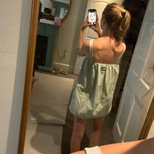 Super cute bubble dress from Daily Drills. A light green color. Has built in shorts. Can be worn as a dress or a top and shorts. Has adjustable string at the bottom. Size XS