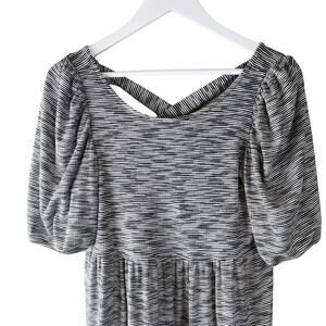 Daily Practice Anthropologie Black White Flounced Dress Size Medium Puff Sleeve