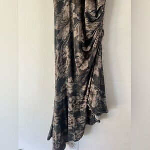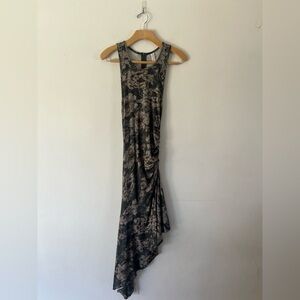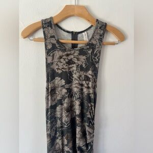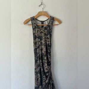 Daily Practice Anthropologie Gray Floral Ruched Asymmetrical Stretchy Sleeveless Dress