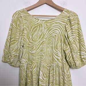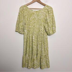 Daily Practice Anthropologie Green Swirl Flounced Criss Cross Back Tunic Dress