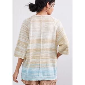 Daily Practice Anthropologie Ombre Cardigan S Colorblock Stripe Linen 3/4 Sleeve