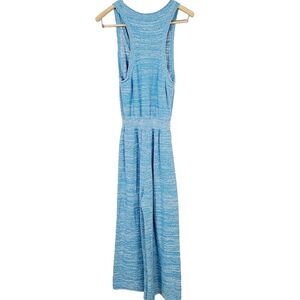 Daily Practice Jumpsuit M Blue White Marled Knit Sleeveless Cropped Wide Leg