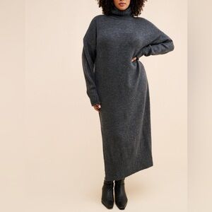 Turtleneck sweater midi dress w/ a leg baring slit and drop shoulder sleeves
