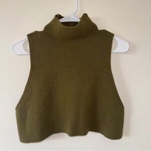 Daily Practice Womens Olive Green Ribbed Mock Neck Cropped Tank Top Medium