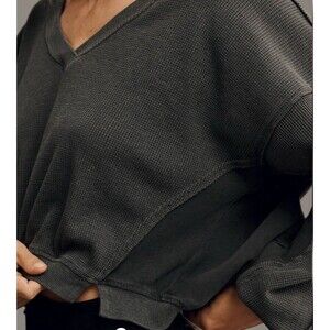 Daily Practice by Anthropologie Grasse Long-Sleeve Top Gray Waffle Medium Yoga