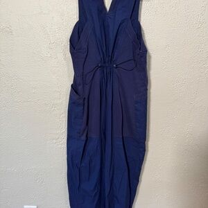 Blue daily practice by Anthropologie jumpsuit in a size small. The body of the jumpsuit is made of cotton poplin with stretch knit cotton down the sides and a front zip detail. In great condition.