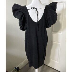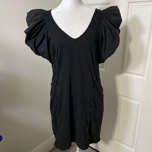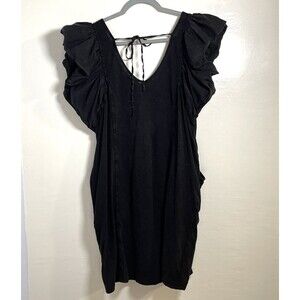 Daily Practice by Anthropologie Malibu Creek Dress Cotton Ruffle Black Large