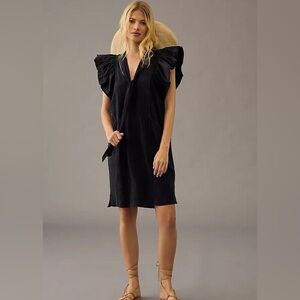 Daily Practice by Anthropologie Malibu Creek Dress Cotton Ruffle Black M