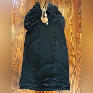 This dress is amazing!!! This Daily Practice by Anthropologie black acid wash dress is perfect for summer! Big puffy sleeves, vneck neckline and darling tie in the back makes this the perfect easy dress!