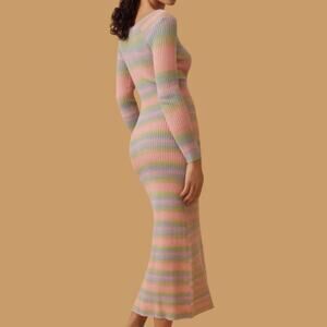 pastel dress, ribbed knit dress, bodycon midi dress, Y2K fashion, minimalist chic, spring outfit, brunch style, summer knit dress, striped pastel dress, trendy knitwear