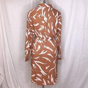 NWT size M. Color is light golden brown and cream. Full button closure, detached belt, breast pocket, side hand pockets. Approximate measurements: armpit-21 1/2”, length-37”. J9-3472
