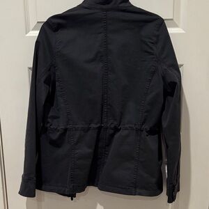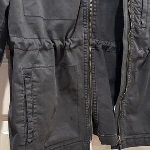 Stylish utility jacket. Features front zipper and pockets. Perfect for layering.