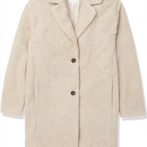 Soft and warm teddy jacket. Ideal for chilly days. Features a cozy texture.
