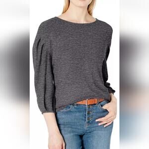 Daily Ritual NEW Pima Cotton Modal Heathered Gray Knit Poof 3/4 Sleeve Top XL