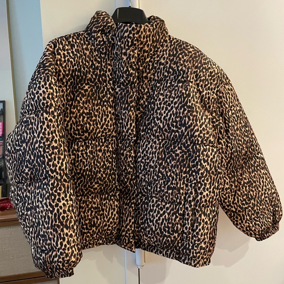 Leopard print oversized puffer. NWOT. Dog friendly household