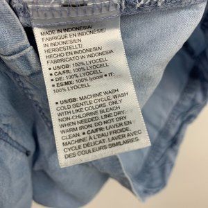 Daily Ritual Romper Blue Lyocell Chambray Button Down Pockets