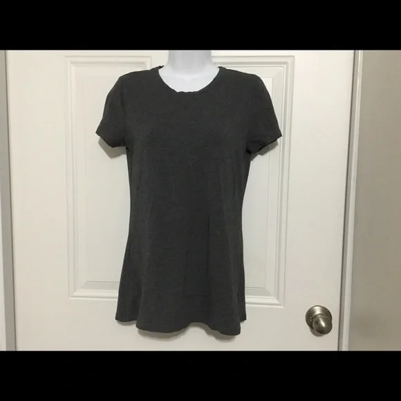 Gray short sleeves tee 95% supima cotton and 5% spandex, size small. Scoop neck.