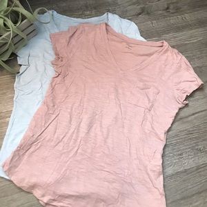These Daily Ritual Tees are the perfect t-shirt for summer! This bundle includes heathered, Vnecks pale pink and pale blue both include a little, cute breast pocket and rounded hem! You’ll love them!