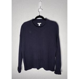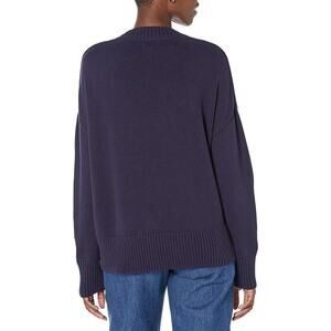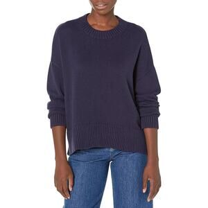 Daily Ritual Women's Boxy Cotton Crewneck Pullover Navy Sweater Classic Preppy