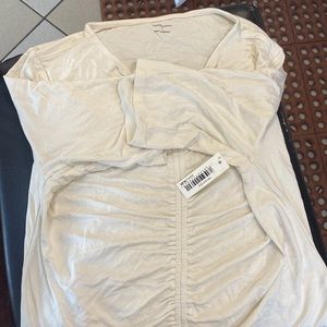 Daily Ritual Women's Jersey Ruched Front Half-Sleeve Crop Top size M white