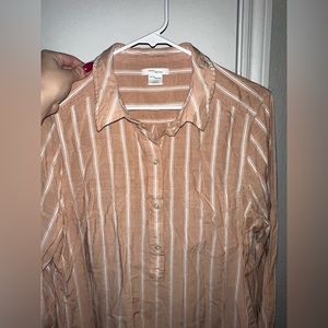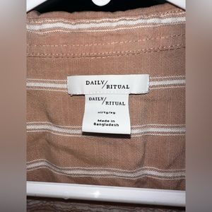Daily Ritual light weight and flowy button down. This shirt buttons down to about half way, super light weight would make a excellent cover up with jean shorts for a casual day at the beach.
