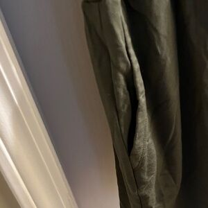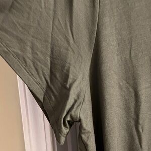 Stylish dark green V-neck romper with short sleeves and drawstring waist. Perfect for casual outings. Soft with 2 pockets