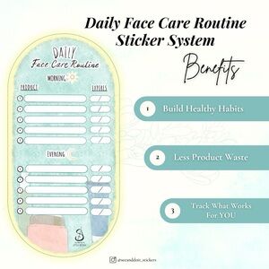 The Daily Face Care Routine Sticker System is meant to help make your daily skincare routine a consistent, easy and refreshing task that requires minimal effort. See the routine, do the routine.