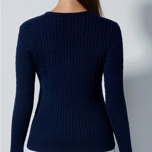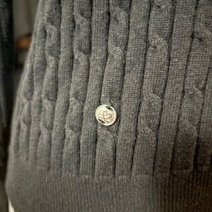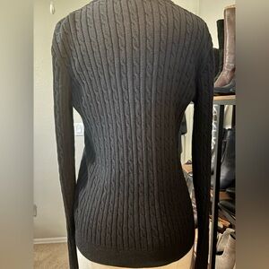 Daily Sports Black V-Neck Cable Knit Sweater. Cotton with a touch of Cashmere.