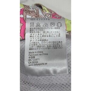 Vibrant Daily Sports golf skort featuring a bold multicolor paisley print in pink, lime green, aqua, and tan. Designed with front and back pockets, silver logo buttons, and built-in mesh shorts for comfort and coverage. Perfect for golf, tennis, or casual wear. Excellent pre-owned condition with no noted flaws.