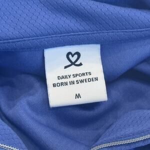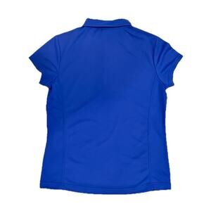 The Daily Sports Women's Blue Polo in size Medium is a stylish activewear shirt ideal for summer and spring golfing. Made from 100% polyester blended fabric, this lightweight and breathable polo features a collared neckline with a spread collar style and short cap sleeves. It has a pullover closure and is designed for moisture-wicking performance, making it perfect for a day on the golf course. The classic blue color and basic style make it a versatile piece that can be easily paired with different bottoms for a comfortable and chic look.