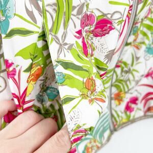 Daily Sports Womens Outdoor Tropical Lightweight Full Zip Floral Golf Vest in White Green and Pink. Size Large.