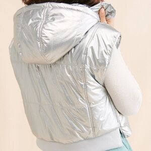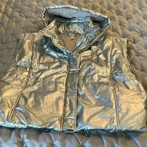 Super cute silver vest from Anthropologie in like new condition brand is daily practice size medium measures 21.5 inches pit to pit 20 inch length