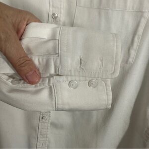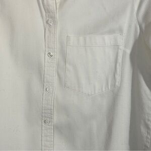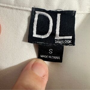 DailyLook white blouse in size small. Button front, left front breast pocket, long sleeves, collar. The care tag has no writing on it. Beautiful piece -- great for layering into fall.