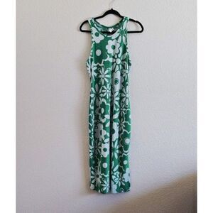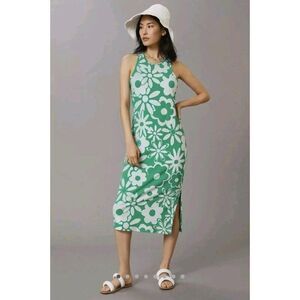 The Anthropologie Terry Jacquard Midi Dress in Size Medium is a stylish and versatile piece perfect for casual occasions. With a sleeveless design, scoop neckline, and cap sleeves, this floral patterned dress in a vibrant green color exudes a tropical beach vibe. Made of polyester jacquard fabric, this pullover dress falls to a midi length, making it ideal for springtime outings or vacation wear. Anthropologie's signature brand and the pencil dress style ensure that this piece is both fashionable and timeless for any woman's wardrobe.